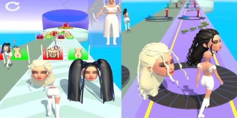 The core gameplay loop centers on a fast-paced track where you must collect correct tiles for clothes, hair, and makeup while dodging destructive obstacles like shears and sludge. Every piece collected fills your "Queen" meter, directly influencing the model's appearance and crucial persona attributes like elegance, intelligence, and vigor.